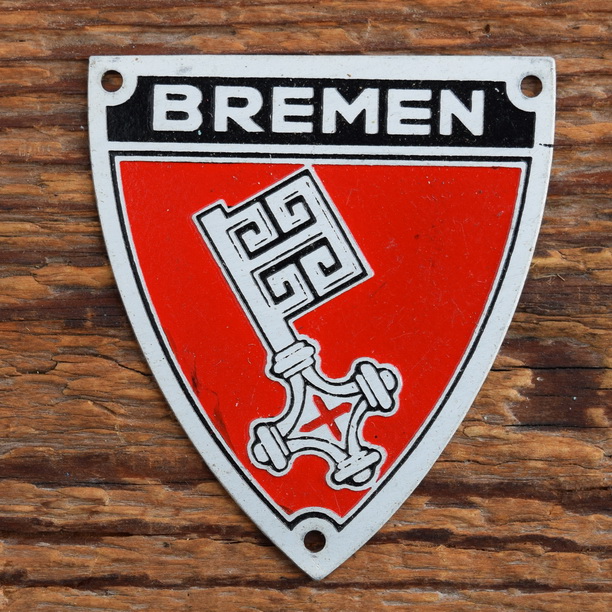 Universelles Wappen aus dem Zubehörbereich z.B. für Schutzbleche BREMEN, 50er Jahre, Originalwappen aus Sammlungsbestand
