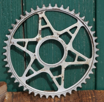 Kettenblatt GRITZNER, 30er-50er J., 1/2 Zoll, verchromt, Gewinde-Durchmesser 53mm, 48 Zähne, gebraucht mit schöner Patina, Zustand siehe Fotos