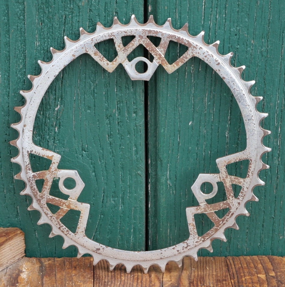 Kettenblatt VICTORIA, 30er-50er J., 1/2 Zoll, verchromt, 3-Punktbefestigung, für Sport- u. Rennräder, 46 Zähne, Lochabstand 102mm, gebraucht mit schöner Patina, Zustand siehe Fotos