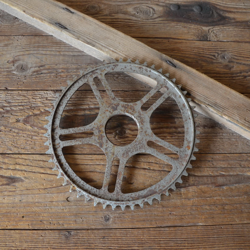 Kettenrad f. Mopednabe; Durchmesser ca. 46,5 mm im Gewinde gemessen, 50er Jahre. Hinweis zum Zustand: Die Tretlager sind unrestauriert, in der Substanz aber ok. Optik und Zustand der Zähne siehe Bilder. Die Konen und Lager müssen, soweit überhaupt dabei und je nach Anspruch an den technischen Zustand, ggf. überholt/ergänzt oder ausgetauscht werden. Ersatzteile können wir für viele Typen gegen Berechnung liefern.