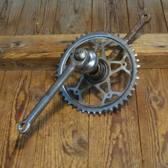 Hinweis zum Zustand: Die Tretlager sind unrestauriert, in der Substanz aber ok. Optik und Zustand der Zähne, siehe Bilder. Die Konen und Lager müssen, soweit überhaupt dabei und je nach Anspruch an den technischen Zustand, ggf. überholt/ergänzt oder ausgetauscht werden. Ersatzteile können wir für viele Typen gegen Berechnung liefern.