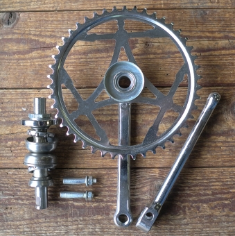 Tretlager mit Keilachse "THUN", verchromt, Standardkurbeln 170 mm, Kettenrad 46 Zähne (1/2 x 1/8 Standard-Tourenradkette) , Innenlager 40 x 70 mm, komplett!
