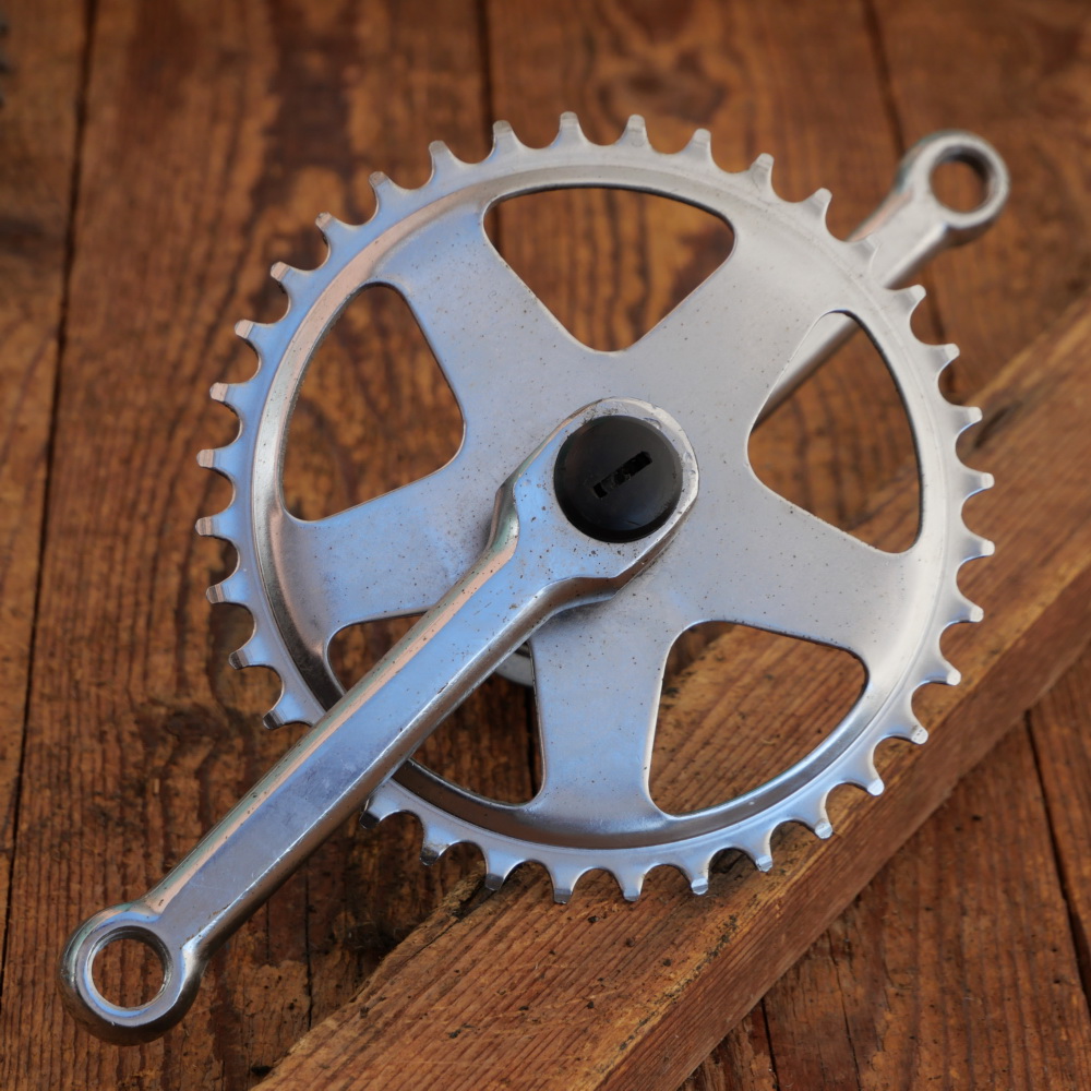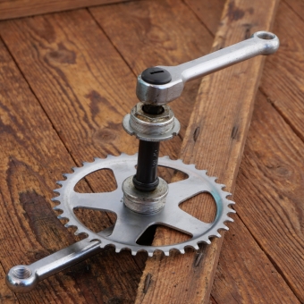 Tretlager universal für Kinderrad, orig. 80er/90er Jahre, verchromt, BSA Vierkantlager, Kettenblatt 36 Zähne, Kurbellänge 125 mm, neuwerig in Top-Zustand siehe Bilder. Rares Originalteil für den passenden Klassiker! Hinweis zum Zustand: Die Tretlager