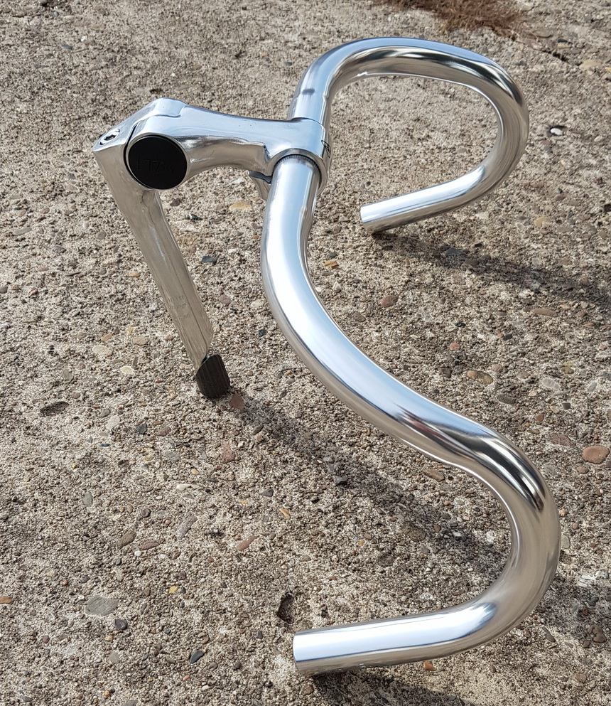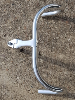 Bahnlenker + Lenker Vorbau "ITM", verstellbar, Aluminium, Klemmung=25,4 mm (weitere Beschreibung siehe ArtNr. 26331) ,Sonderpreis !. Die Vorbauten sind ca. 30 Jahre alt, einst hochwertig in Italien gefertigt