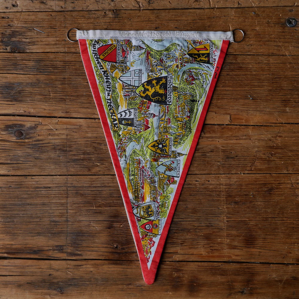 TOBI-Wimpel "Rhein-Neckar", 60/70er Jahre Altbestand, ca. 25cm lang, für Fahrräder, Mopeds, Motorräder und Roller, aus farbechtem Fahnentuch, teilweise wetterfest in PVC-Folie eingeschweißt, zum Teil für Wimpelstange geeignet