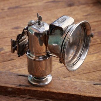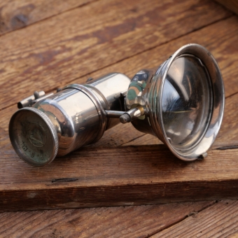 Carbid-Lampe Scharlach für Winkelhaltermontage, 20er Jahre, Messing vernickelt, Höhe ca. 15 cm,