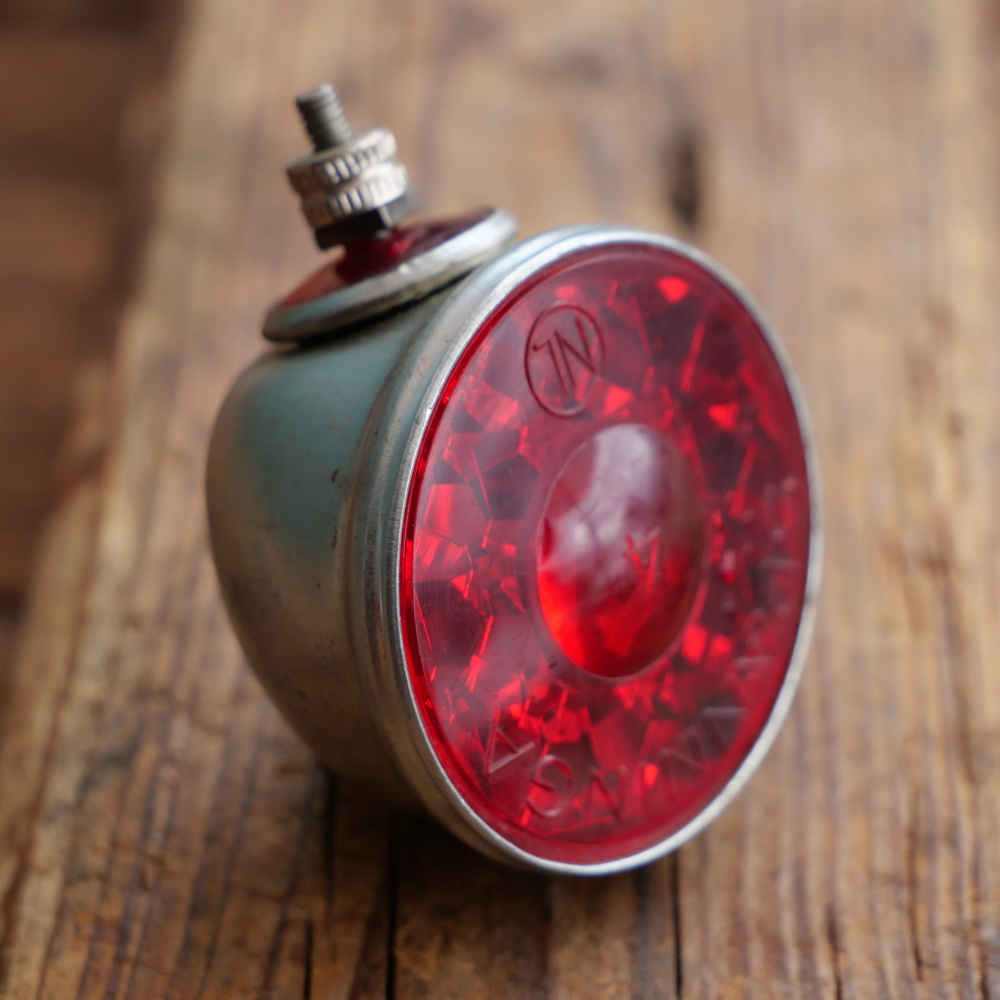 Rücklicht SPANINGA, orig. 60er/70er Jahre, Weißblech, Durchmesser ca. 4,5cm, alte Neuware mit leichten Lagerungsspuren, Zustand gemäß Fotos