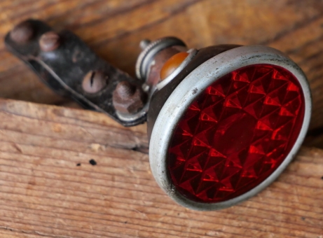Streben-Rücklicht "AHA", orig. 30er Jahre, Luxusmodell mit 2 Kontrollaugen und Echtglaseinsatz, rare unbenutzte Ware mit schöner, lagerungsbedingter Patina. Hier die seltene Gelegenheit eines der wenigen verbliebenen Exemplare aus altem Lagerbestand zu