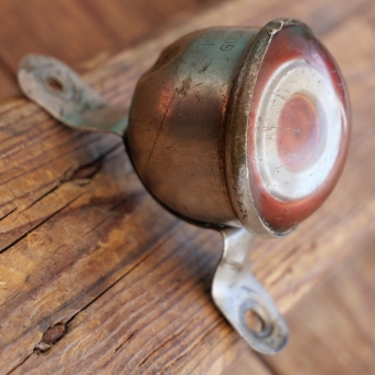 Rückstrahler TIEGERÖJET, dänisch, orig. 20er Jahre, Stahl vernickelt, Domlinsen-Echtglas mit "Auge", Durchmesser ca. 4,5cm, gebraucht mit Patina, Zustand gemäß Fotos
