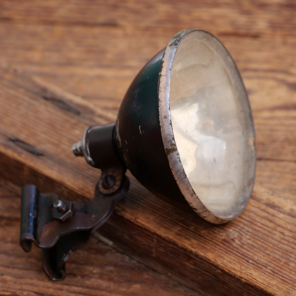 Scheinwerfer für Winkelhaltermontage, orig. um 1930, chrom/schwarz, Durchmesser ca. 8 cm,