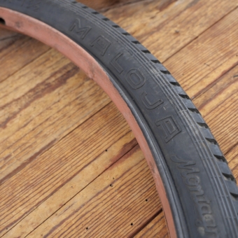 Reifen Fahrrad, MALOJA Montagne, 26 x 1 1/2, Wulst, 30er-50er J., schwarz, gebraucht mit entsprechenden Gebrauchsspuren. Für museale Zwecke optimal, für die gelegentliche Ausfahrt ok, für den harten Alltagseinsatz aber nicht die richtige Wahl.