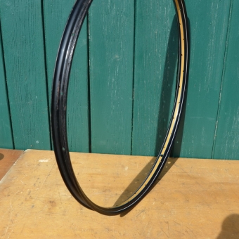 Felge 28 x 1,75 für Drahtbereifung, 36-loch, Breite 35 mm, schwarz, Linierung geflammt blau/weiß, Passend gebohrt für 2mm-Speichen