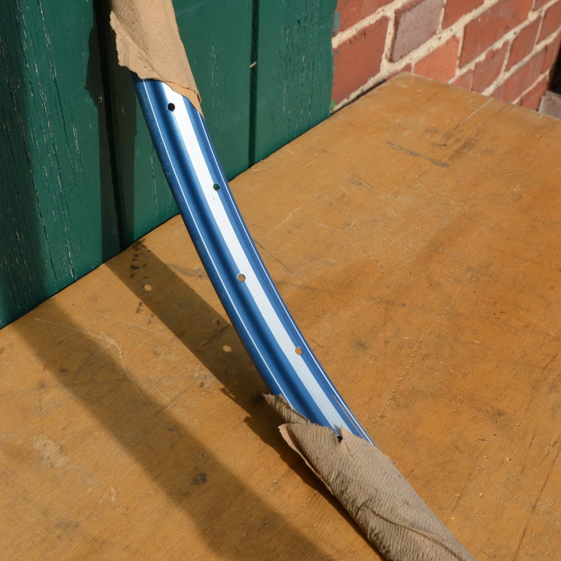 Felge 28 x 1,75 für Drahtbereifung, 36-loch, Breite 36 mm, blau metallic, silber liniert, NOS, neuwertig, Passend gebohrt für 2mm-Speichen