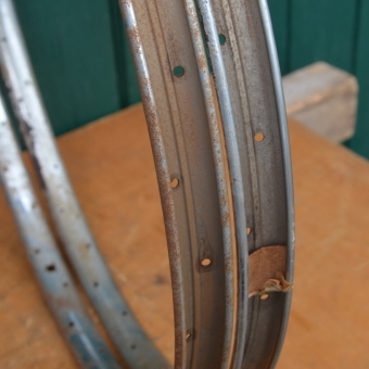 Wulstfelgensatz 26 x 1 ½, 36-loch, Breite 33 mm, verchromt mit Patina, Aussendurchmesser ca. 590 mm, passend gebohrt für 2mm Speichen, Auch passend für Schweizer Militärrad (Ordonanzrad)