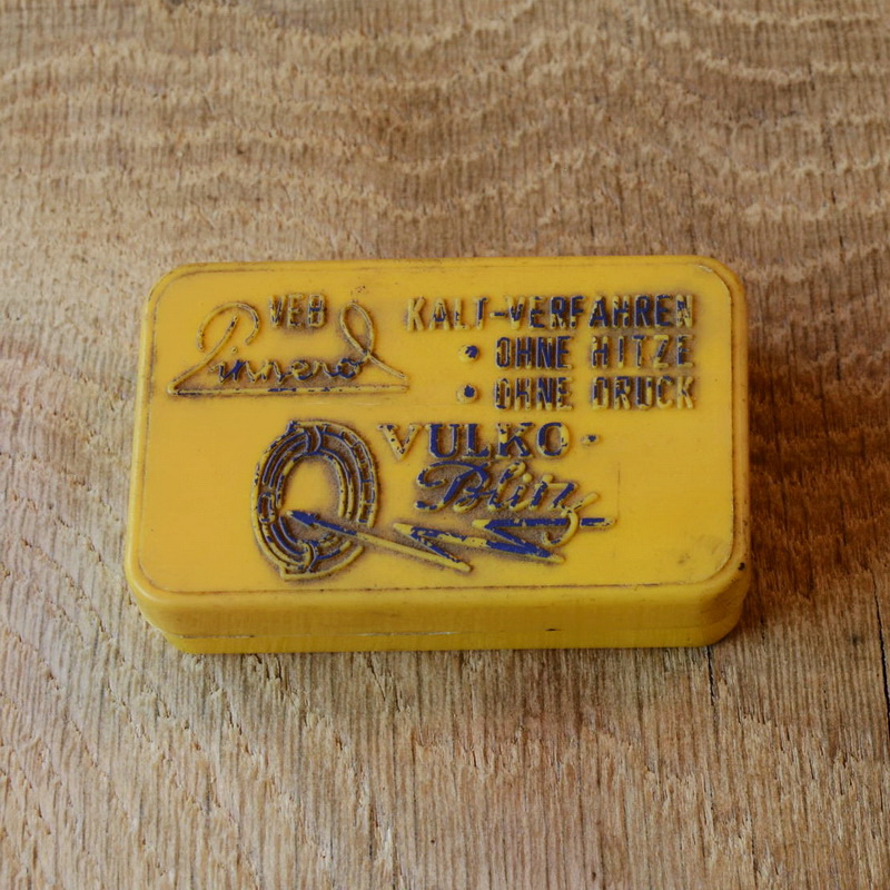 Flickzeug Dose orig. "PINNEROL" 60er Jahre, 76 x 48 x 20 mm, ohne Inhalt, kunststoff Zur authentischen Füllung haben wir noch altes Flickmaterial zum zuschneiden und orig. alte Continental Gummilösung im SHOP. Zum Gebrauch auch frische Ware in unser