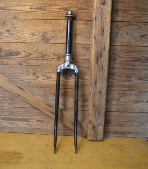 Fahrradgabel 26 Zoll, "Diamant" 60er Jahre DDR-Produktion, incl Steuersatz und Haube, Schaftlänge 210 mm, Gewindelänge 30 mm, Scheidenlänge 370 mm, Weite oben 63 mm,