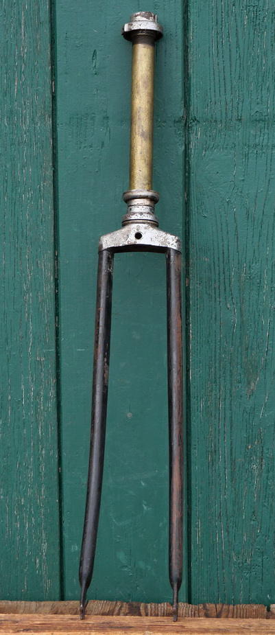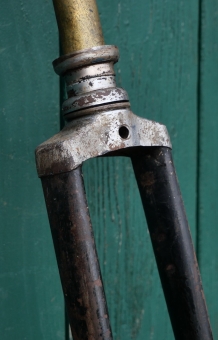 Fahrradgabel 28 Zoll OPEL, schwarz, für Tourenrad 30er J., inkl. orig. Steuersatz verchromt, Schaftlänge 235 mm, Durchlaufhöhe 385 mm, gebraucht, überstrichen, Zustand gemäß Fotos
