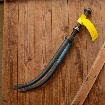Gabel 28"orig. 30-50er J. unrestauriert, Schaftlänge 213 mm, Scheidenlänge 390 mm, Weite oben 63 mm, Zustand siehe Bilder