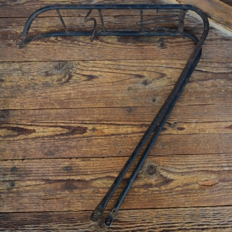 Gepäckträger, orig. 50er Jahre, gebraucht mit Gebrauchsspuren gemäß Bildern, obere Montage mit Klaue am Mittelsteg, untere Montage am Rahmen/Anlötauge, Breite 14cm, Höhe (gemessen in Montagestellung von Unterkante Ladefläche, grade runter bis Befestigungsbohrung unten) c.a. 38,5cm