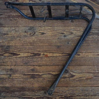Gepäckträger, orig. 50er Jahre, gebraucht mit Gebrauchsspuren gemäß Bildern, obere Montage am Sattelklemmbolzen, untere Montage auf der Achse, Breite 16,5cm, Höhe (gemessen in Montagestellung von Unterkante Ladefläche, grade runter bis Befestigungsbohrung unten) c.a. 37cm
