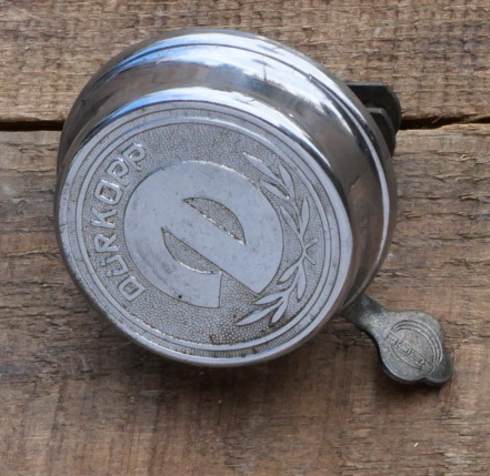 Fahrrad/Moped Klingel Deckel "Dürkopp", orig. 50er Jahre, verchromt, ggf. Gebrauchsspuren siehe Bilder. Diese Klingel kommt mit funktionstüchtigem Unterteil