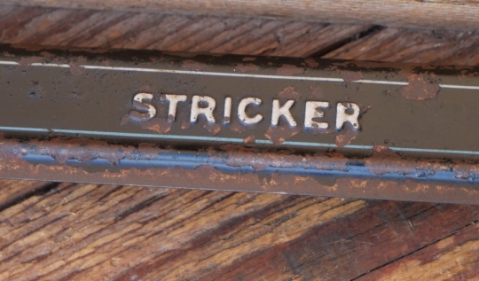 Kettenschutz STRICKER, schwarz, Linien weiß/blau, Länge ca. 53cm, orig. 30er-50er J., gebr.
