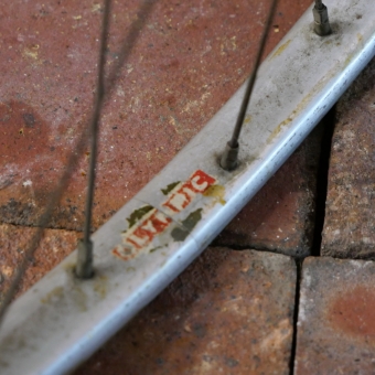 Vorderrad 27 Zoll (630), 50er J., für Bahn-Rennrad, OLYMPIC Hohlkammer-Schlauchreifenfelge, Alu, silber, Breite