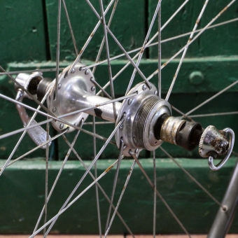 schwarz eloxiert, Breite ca. 20mm, 32 Loch, DD-Chromspeichen, Nabe "Campagnolo Record", für