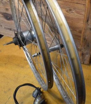 Laufradsatz 24 Zoll (507-19) "Grünert" Alufelgen, Speichen verzinkt, 36-Loch, Beite 25 mm, Nabe "Shimano Spectro" 7-Gang mit Griff, Einbaumaß 100/130 mm, Ventilbohrung 8,5 mm