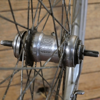 108 mm, F&S-Nabe verchromt mit Bremsklaue 14 mm, Speichen 2 mm verchromt, gebraucht, technisch o.k., Zustand gemäß