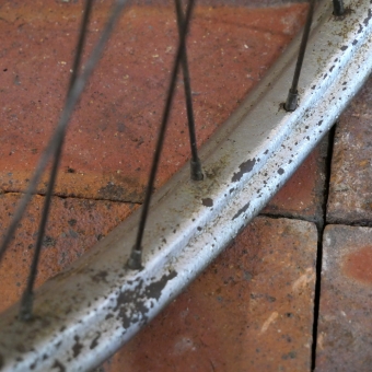 Hinterrad 26 Zoll (559), für Drahtbereifung, original 1951, Felgenbreite ca. 35 mm, verchromt, Einbaumaß ca.