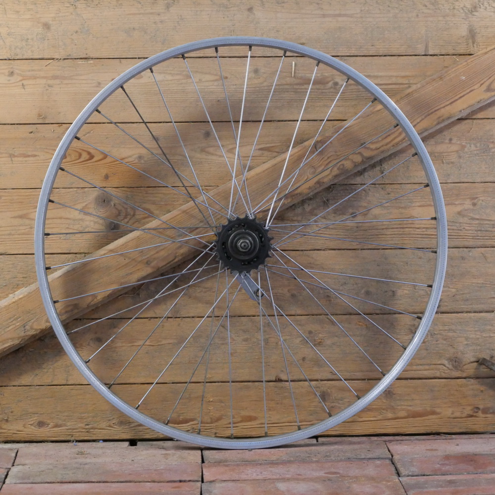 Hinterrad mit WEINMANN-Felge 26 Zoll (559), Alu, Breite 27 mm, F&S Torpedo-Nabe verchromt von 1940