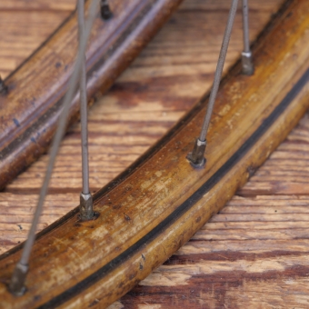 Laufradsatz 26 Zoll (559) für Drahtbereifung Ballonrad, 30er J., Felgenbreite ca. 35 mm, Holzdekor,