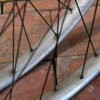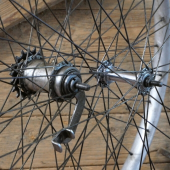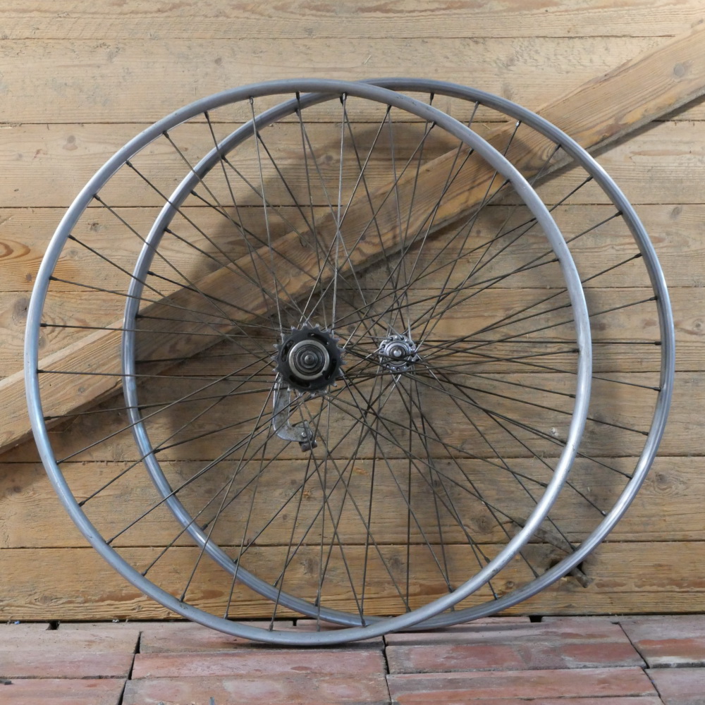 Laufradsatz, 26 Zoll, Außendurchmesser ca. 581 mm, 1920er/30er J., Wulstfelgen aus Alu, Breite ca. 32 mm, Naben: vorn F&S