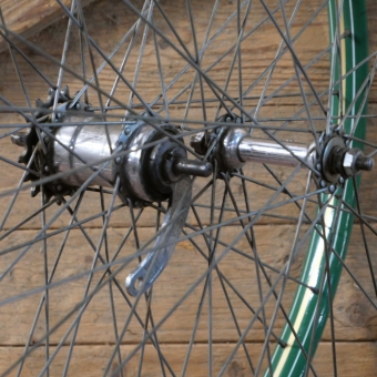 ca. 32 mm, Naben: vorn F&S verchromt/hinten Torpedo von 1926, verchromt mit Schraubritzel 17 Zähne,