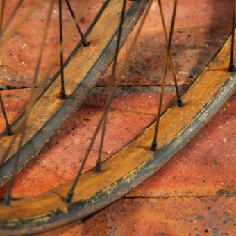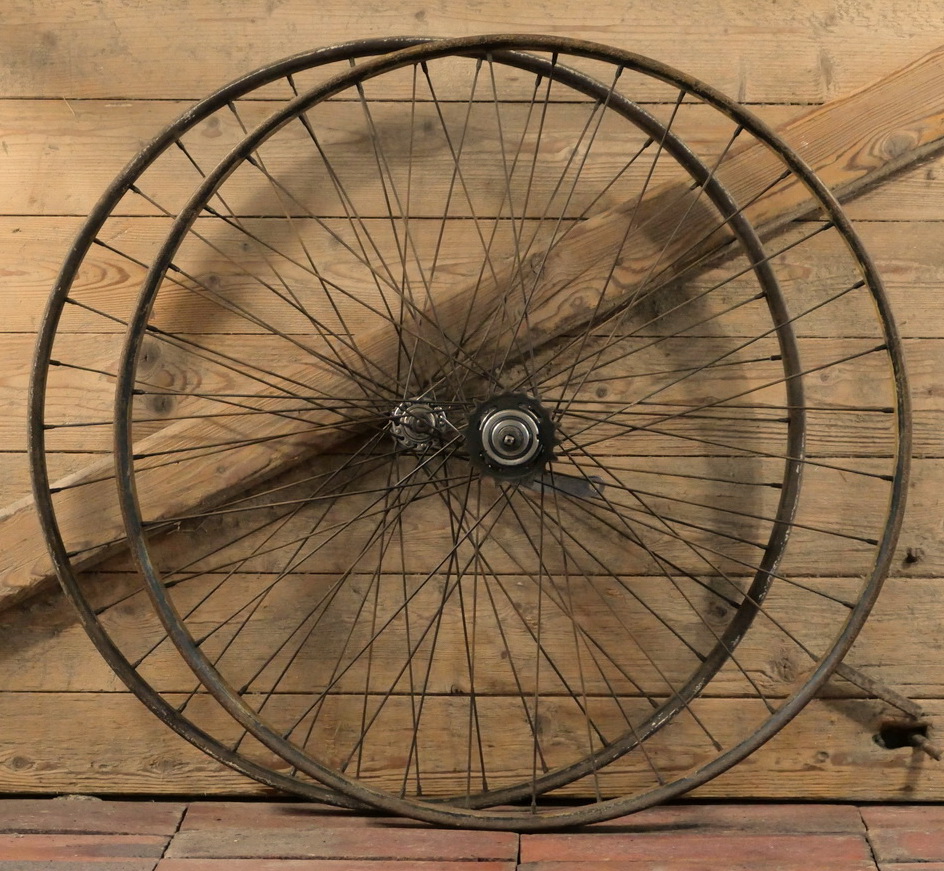 Laufradsatz 26 Zoll, Außenmaß ca. 581 mm, für Wulstbereifung, 1933, Felgenbreite ca. 35 mm, Holzdekor, Linierung schwarz,