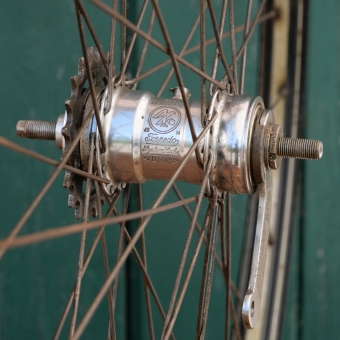 F&S Torpedo-Nabe, verchromt, Einbaumaße: ca. 108mm, mit Schraubritzel 20 Zähne, 2mm Chrom-Speichen,
