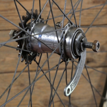F&S Reichenbach Torpedo-Nabe, verchromt, Einbaumaße: ca. 108mm, mit Schraubritzel 20 Zähne, 2mm Zink-Speichen,