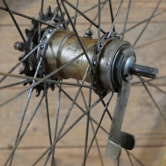 Hinterrad 28 x 1 1/2, Außendurchmesser ca. 645 mm, für Wulstbereifung, 1927, Breite ca. 34 mm, Holzdekor,