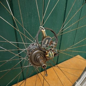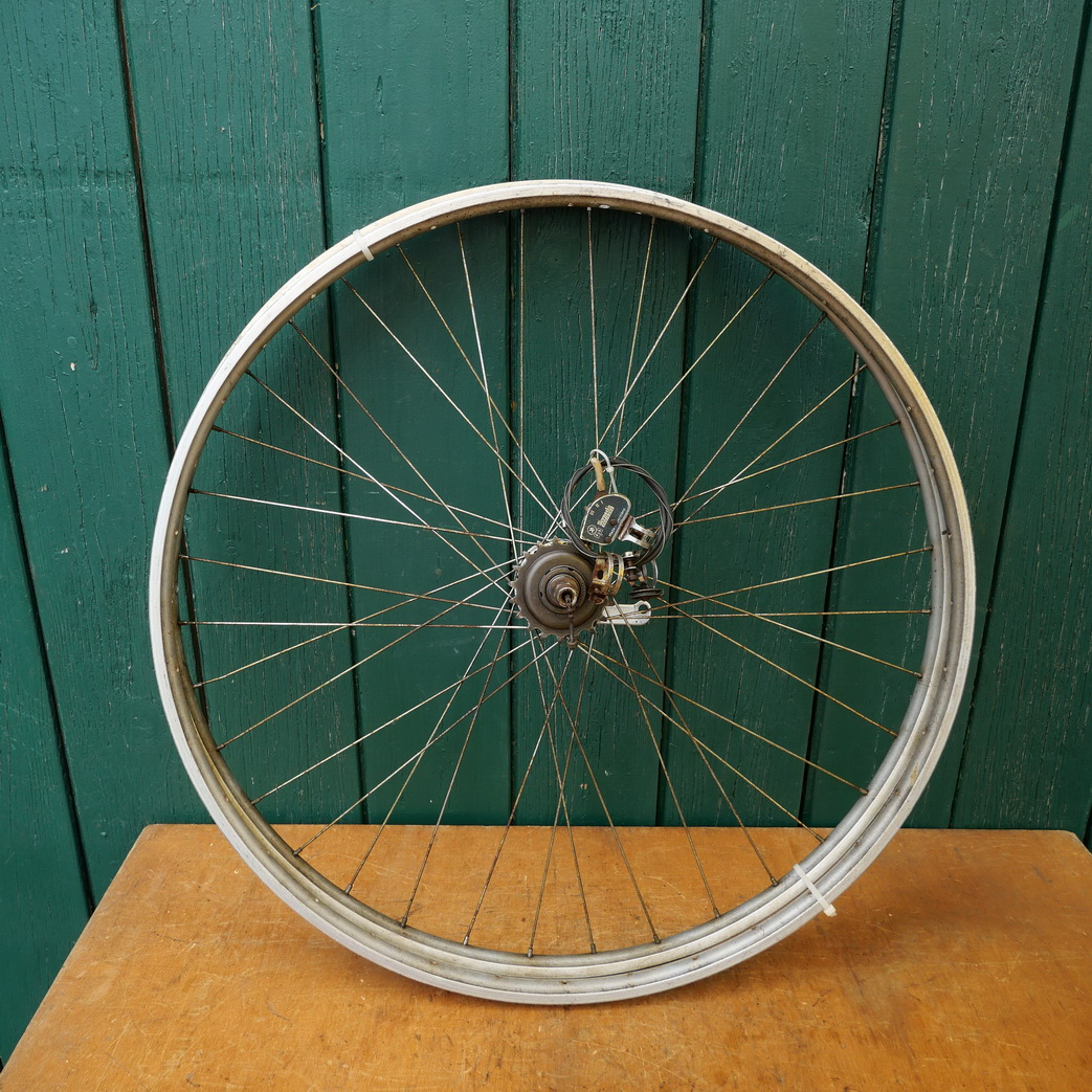 Laufrad 28 Zoll plus zusätzliche Felge für Vorderrad, Felge Alu Breite 26mm, Speichen verzinkt, mit Sachs Torpedo Dreigangnabe Modell 55, einschließlich Schaltkettchen und Schalthebel, Einbaumaß 115 mm, 50er/60er Jahre