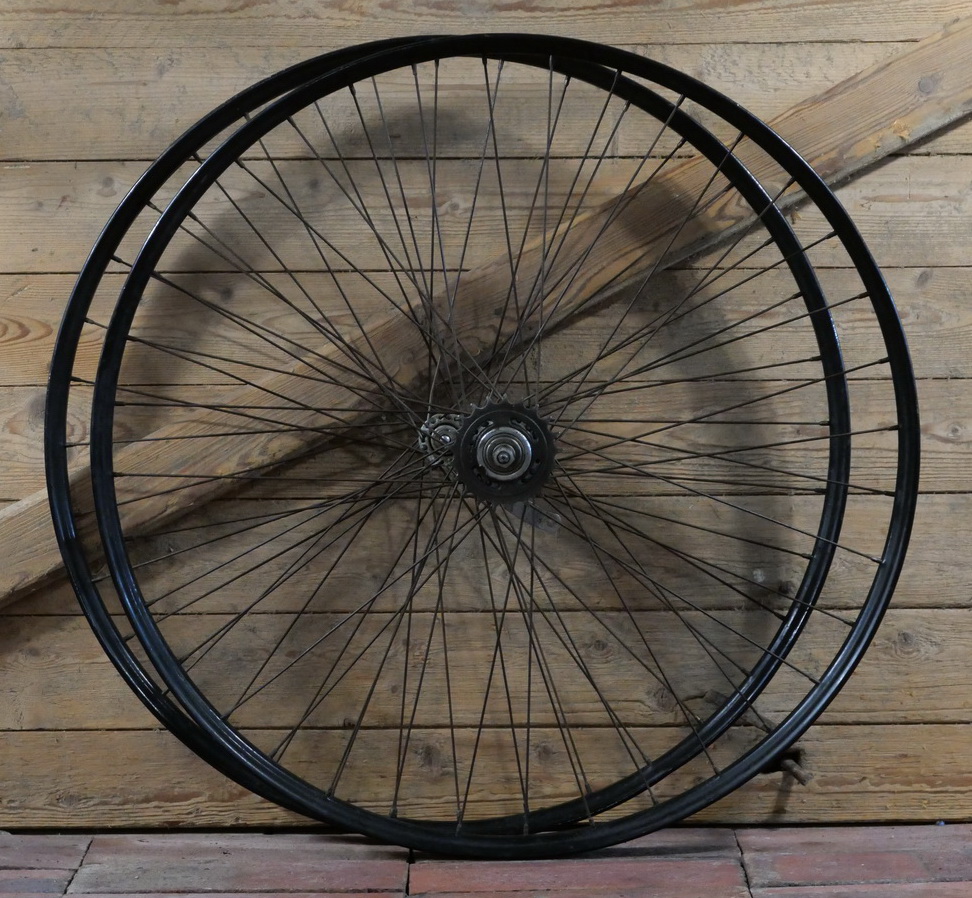 Laufradsatz 28 Zoll (622), für Drahtbereifung, 1938, Felgenbreite ca. 40 mm, schwarz, Einbaumaße ca. 91/108,
