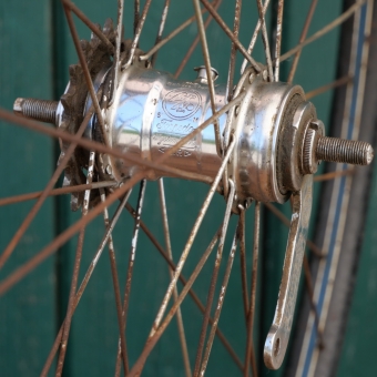 F&S Torpedo-Nabe, verchromt, Einbaumaße: ca. 108mm, 2mm Chrom-Speichen, gebraucht mit schöner