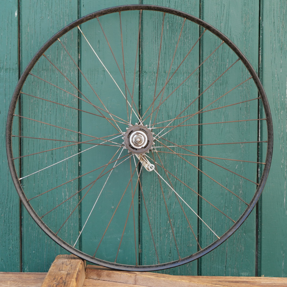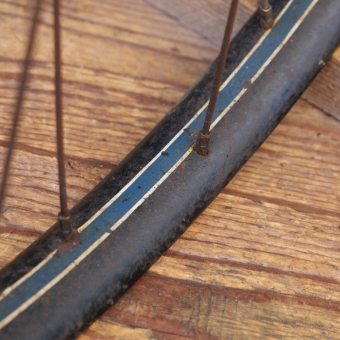Laufradsatz 28 Zoll, Außendurchmeser ca. 645 mm, für Wulstbereifung, Bj. 1951, schwarz, Linien blau/weiß, Breite ca. 32mm,