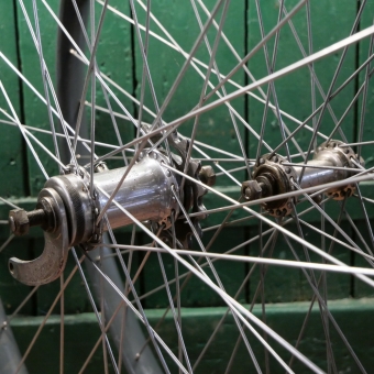 Schraubritzel 5/8 Zoll 16 Z., Vorderradnabe vernickelt, 1910er/20er Jahre, Felgen mit
