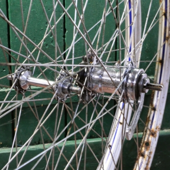 blau/weiß, Einbaumaß ca. 91/108, Naben: vorn F&S verchromt / hinten F&S Torpedo