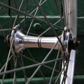 ca. 100 mm, SHIMANO 600 Tricolore-Nabe, Speichen 2 mm verzinkt, alte Neuware mit minimalen Lagerungsspuren,