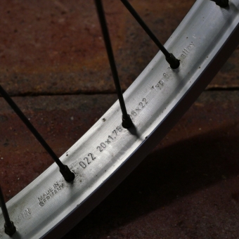 Vorderrad 20 Zoll (406), für Drahtbereifung, SCHÜRMANN Alu-Felge, original 80er J., Breite ca. 25 mm, Einbaumaß
