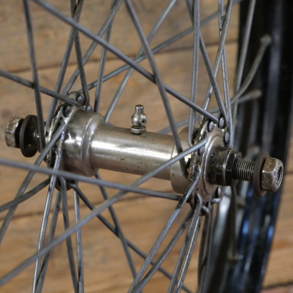 V-26-S, vernickelt mit Achsdurchmesser 10 mm, Einbaumaß ca. 98 mm, 3 mm Speichen verzinkt, gebraucht mit schöner