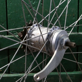 Hinterrad "Grünert", Alu, Kastenfelge für Drahtreifen, 26 Zoll (559), Breite ca. 28 mm, Nabe "Sachs Spectro T3",