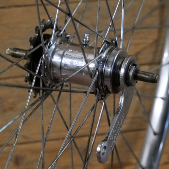 Hinterrad mit Regida-Felge 26 Zoll (559), verchromt, 1960er/70er J., Breite 28 mm, F&S Komet-Nabe mit Steckritzel 18Zähne, Einbaumaß ca. 108 mm, 2mm Speichen verchromt, gebraucht mit schöner Patina, Zustand gemäß Fotos